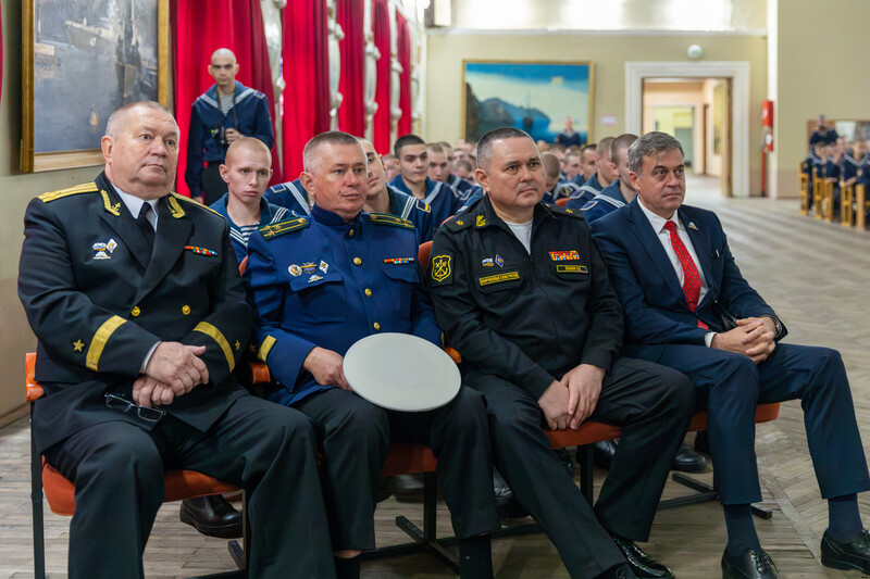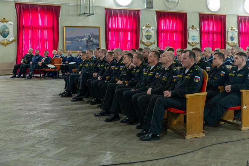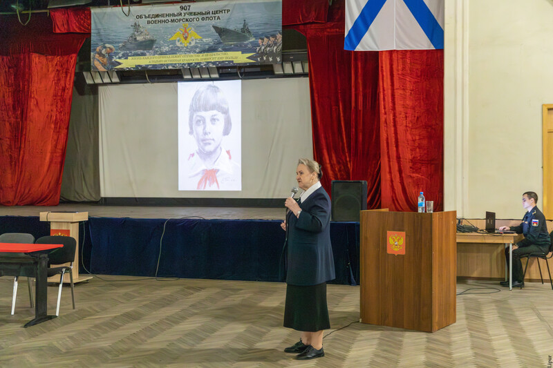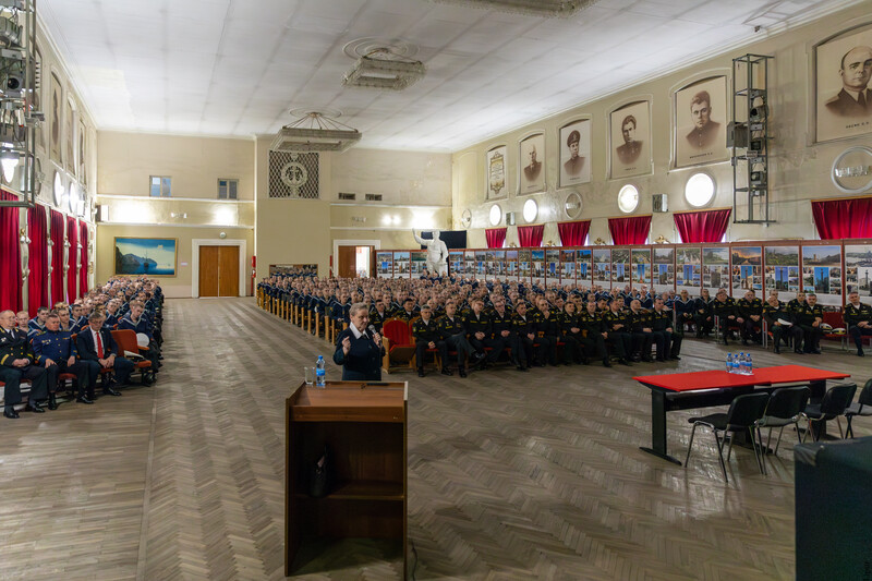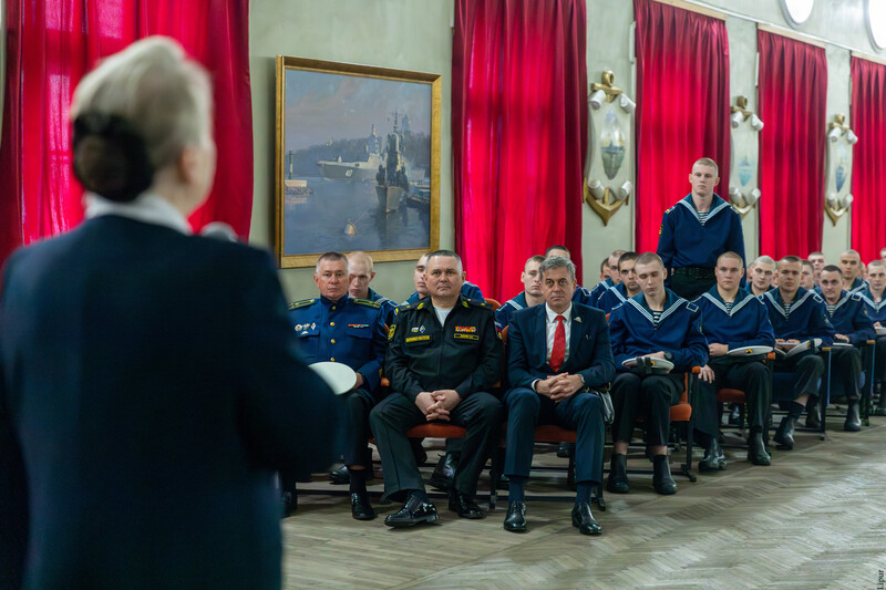 Первая лекция 23 сентября состоялась в объединенном учебном центре, где от имени главнокомандующего Военно-Морским Флотом Героя России адмирала Александра Моисеева Любовь Яковлевну поприветствовал заместитель главнокомандующего Военно-Морским Флотом по военно-политической работе – начальник военно-политического управления контр-адмирал Владислав Павлов.