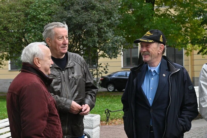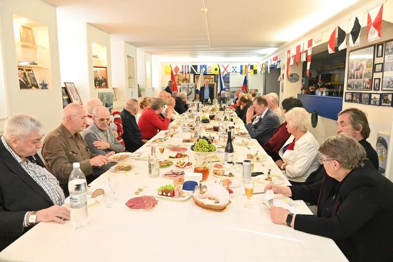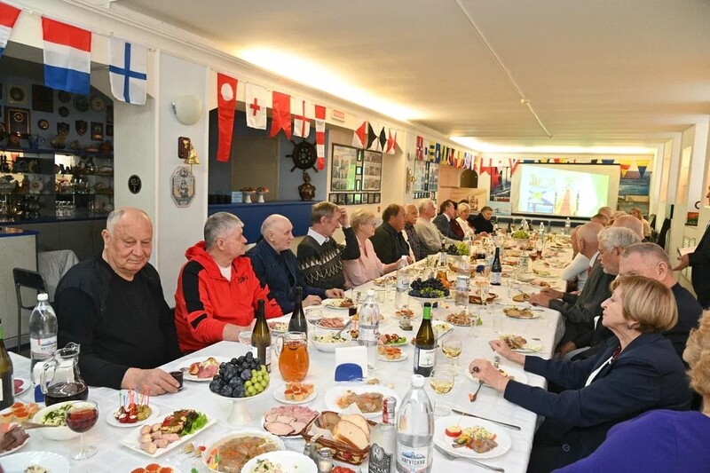 После посещения училища мероприятие продолжилось в кают-компании Клуба, где мы смогли пообщаться поближе, рассказать о своей службе, работе на пенсии, семье, детях и внуках. На встрече сложилась удивительно энергетическая и эмоциональная атмосфера. Многие пришли на встречу с женами – верными подругами, которым было оказано достойное внимание. Пригласили и приехали выпускники с других городов: Москвы, Твери, Воронежа, Перьми, Славянска на Кубани. Всего на встрече было 36 человек.