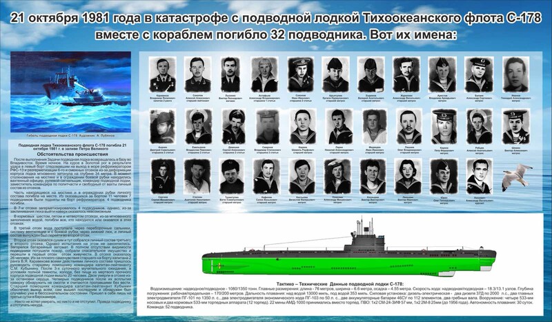 21 октября 1981 года при возвращении в главную базу Тихоокеанского флота г. Владивосток, заливе Петра Великого погибла дизель-электрическая подводная лодка «С-178». По лодке «проехал», как бульдозер своим «ледокольным» форштевнем «Реф-13», построенный датчанами для работы в северных широтах. На лодке погибло 32 подводника. 27 моряков через трое суток смогли пройти все круги ада. Большинство подводников вышли с тяжелыми последствиями для здоровья и чудом выжили. Некоторым повезло больше, но не намного. Нашей подлодкой командовал капитан 3 ранга Валерий Александрович Маранго. Командир без лжи, подлости и лести. Жизнь подсказывает, что эти три качества занесут в красную книгу, как вымирающие. Буду счастлив, если этого не случится. Экипаж командира уважал, чтил, а моряки воспринимали его как родного отца. Да и было за что. Все как на любом соседнем корабле нашей 4 бпл. В годы расцвета океанского ракетно-ядерного флота, эти три качества не повлияли на выводы суда, при оглашении приговора Военного Трибунала Тихоокеанского Флота. Не повлияла и всестороння поддержка экипажа, офицеров и командиров 4 бпл, которые встали на защиту Валерия Маранго. После отсидки в 31 ИТК в райцентре Чугуевка Приморского края и принудительных работ на «химии», Маранго некоторое время работал в прибрежном флоте, но годы проведенные в заключении и груз переживаний отвели нашему командиру небольшой свободный срок жизни. В 2001 года Валерия Александровича похоронили на «Лесном» кладбище г. Владивостока без каких-либо почестей, на главной «аллее», в первом ряду. Экипаж за долгие 44 года продолжает поддерживать своего командира и при первой возможности навещает и отдает честь у «траурного причала» на «Лесном». В июне-месяце, я прилетел в г. Владивосток с группой ТК «Россия Сегодня», для продолжения сьемок фильма о судьбе экипажа и командира Валерия Маранго. Примечательно, что несмотря на 10-дневный план работы, режиссер поддержал мою просьбу вначале к командиру на «Лесное» заедем, а после разместимся в гостинице. Сопровождавший нашу группу офицер кафедры военно-политической работы ТОВВМУ им. С.О. Макарова, с пониманием воспринял важность момента и стал невольным участником сьемок фильма о ПЛ «С-178». Но вернемся в 1981 год. В этот, не по календарю холодный октябрьский день на теплоходе «Реф-13», который числился за автобазой всемогущего Крайрыболовпотребсоюза, был праздник, посвященный дню рождения старшего помощника капитана Виктора Курдюкова, со всеми вытекающими последствиями, которые привели главного виновника к 15-летнему заключению. Вот как вспоминал трагедию с ПЛ «С-178» недавно ушедший в последнюю автономку адмирал А.А. Кузьмин, командир 6-й эскадры подводных лодок ТОФ. При жизни, мы часто с Анатолием Алексеевичем вспоминали последние события связанный с моей лодкой.
