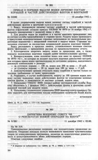 Согласно приказу, «в целях упорядочения выдачи водки личному составу кораблей и частей действующих флотов и флотилий» водку выдавали одновременно с раздачей пищи в обед.