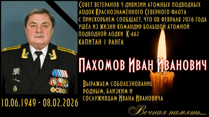 8 февраля после продолжительной болезни ушел в свое последнее плавание наш друг, подводник, замечательный офицер и Человек, капитан 1 ранга в отставке Иван Иванович ПАХОМОВ.